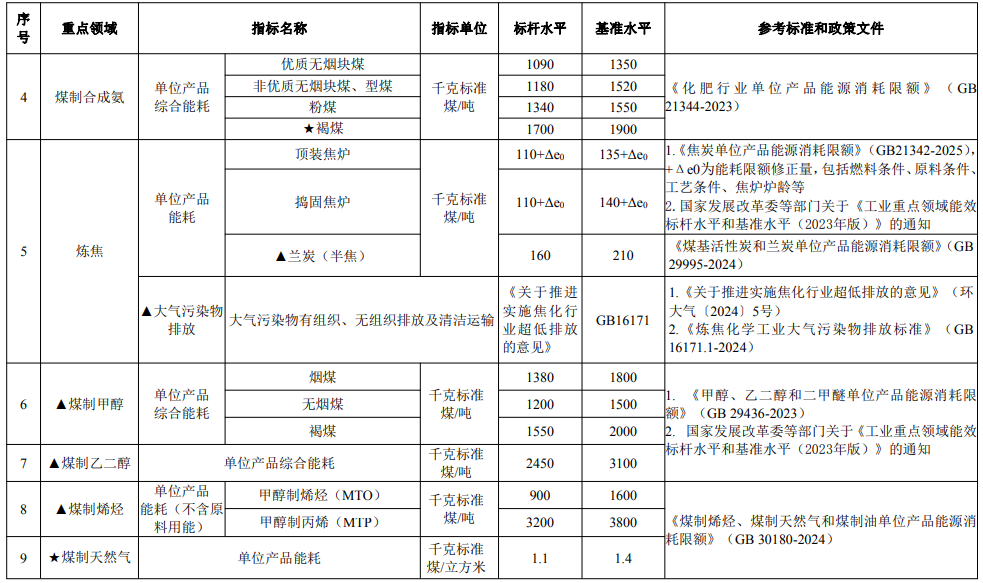 为贯彻落实党中央、国务院决策部署,推动煤炭产业由低端向高端、煤炭产品由初级燃料向高价值产品攀升,按照《国家发展改革委等部门关于加强煤炭清洁高效利用的意见》(发改运行〔2024〕1345号),经商有关方面,现发布《煤炭清洁高效利用重点领域标杆水平和基准水平(2025年版)》,并就有关事项通知如下。