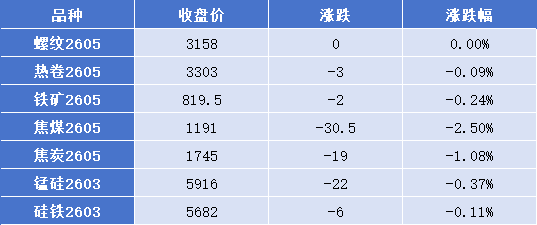 截至9月4日9点30分,黑色期货市场各品种下跌