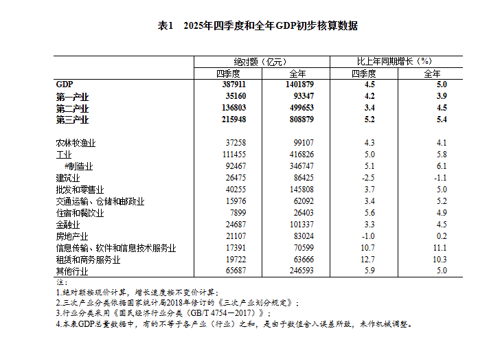 国家统计局发布2025年四季度和全年国内生产总值初步核算结果
