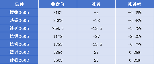 截至9月4日9点30分,黑色期货市场各品种下跌