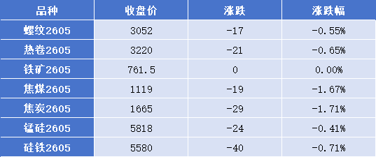 截至9月4日9点30分,黑色期货市场各品种下跌