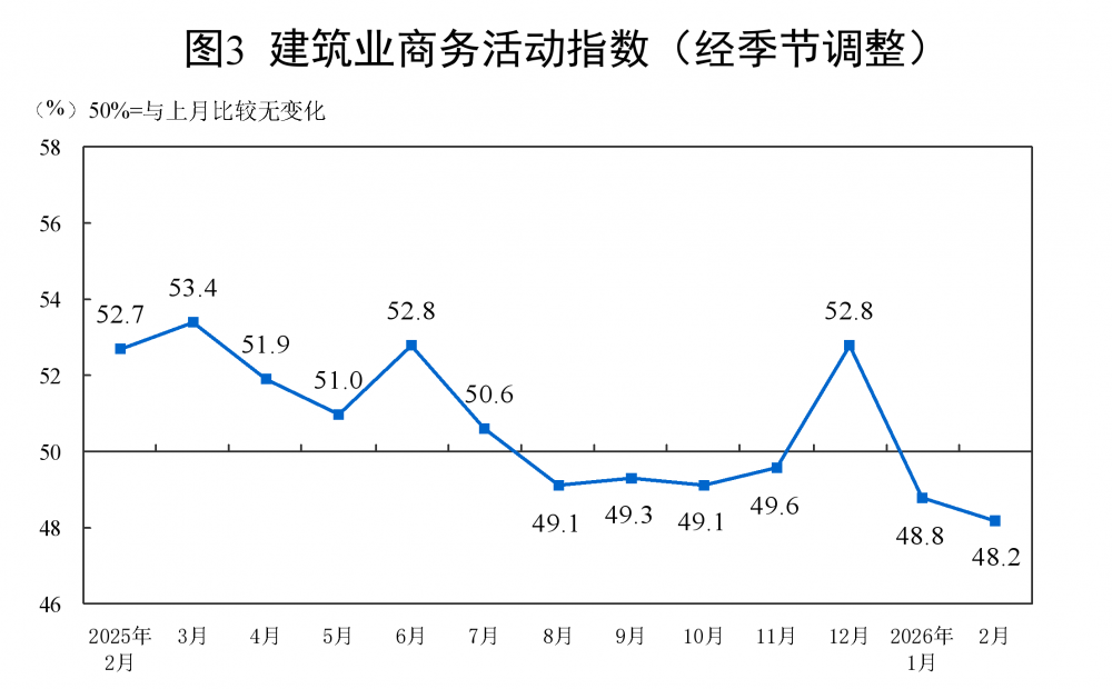 分行业看,建筑业商务活动指数为48.2%,比上月下降0.6个百分点;服务业商务活动指数为49.7%,比上月上升0.2个百分点。从服务业行业看,住宿、餐饮、文化体育娱乐等行业商务活动指数均位于60.0%以上高位景气区间;资本市场服务、房地产等行业商务活动指数均低于临界点。