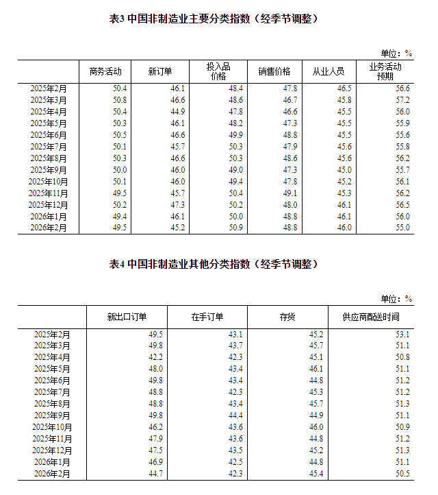业务活动预期指数为55.0%,比上月下降1.0个百分点,仍位于较高景气区间,表明非制造业企业对市场发展保持信心。分行业看,建筑业业务活动预期指数为50.9%,比上月上升1.1个百分点;服务业业务活动预期指数为55.8%,比上月下降1.3个百分点。